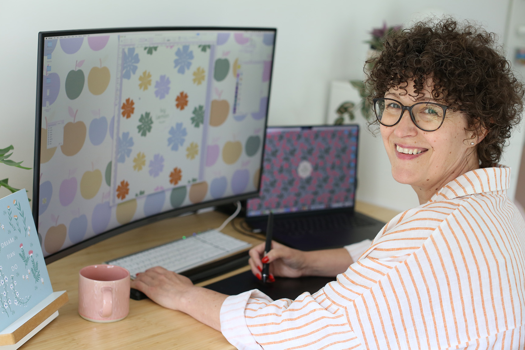 Our studio, based in the heart of the South Devon countryside, is surrounded by a wealth of inspiration; countryside walks, botanical gardens, the sea and nature reserves. Here in our studio we blend hand-drawn illustrations, watercolours and digital design to craft seamless patterns that are both beautiful and commercial.