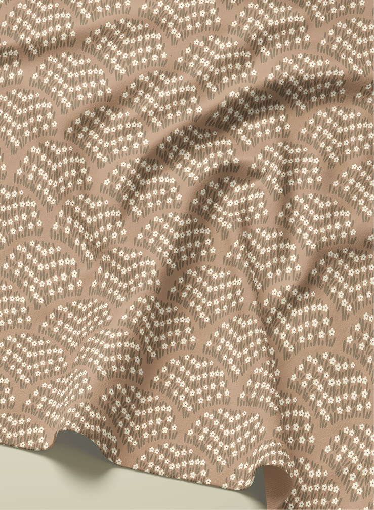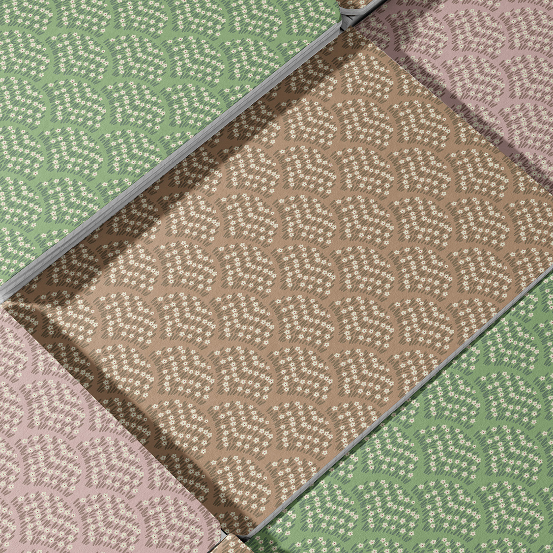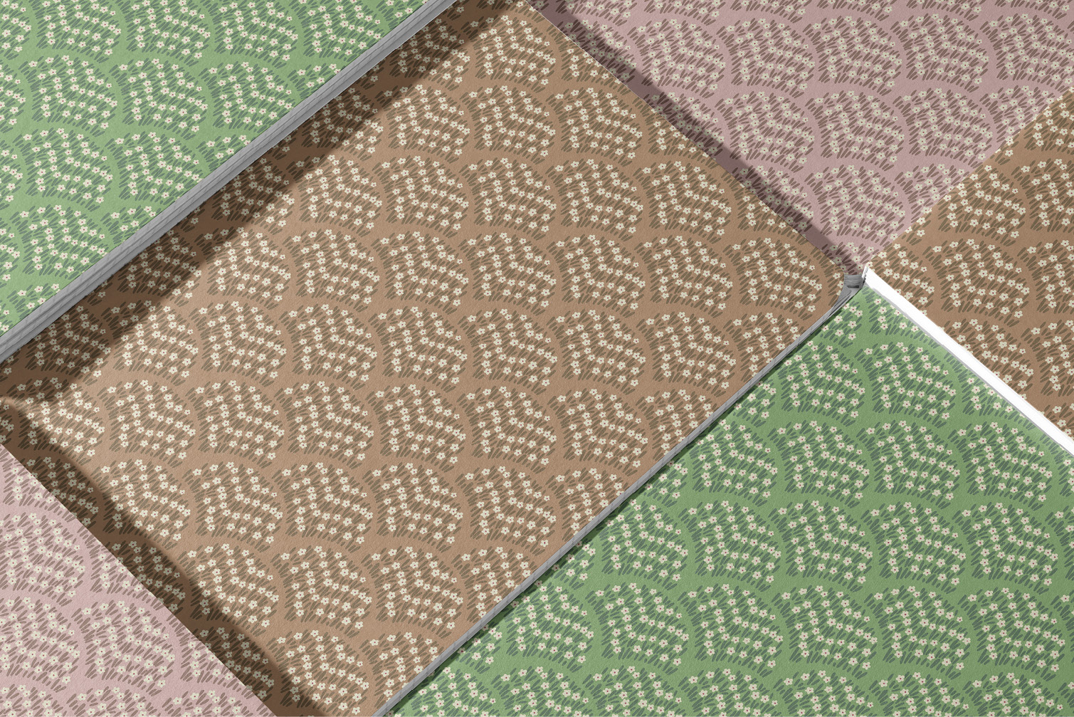 Luna PL092 features delicate clusters of miniature blossoms arranged in gentle scalloped bouquets. Its neat, repeat structure and soft curves create a flowing effect that feels natural and comforting.