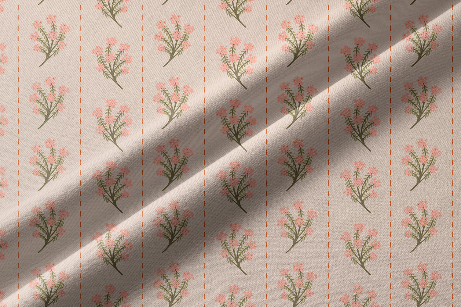 With its simplicity and symmetry, together with the hand-drawn aesthetic adding a contemporary softness, Mabel PL102 is especially versatile for fabric rolls, wallpaper, gift wrap and nursery accessories.