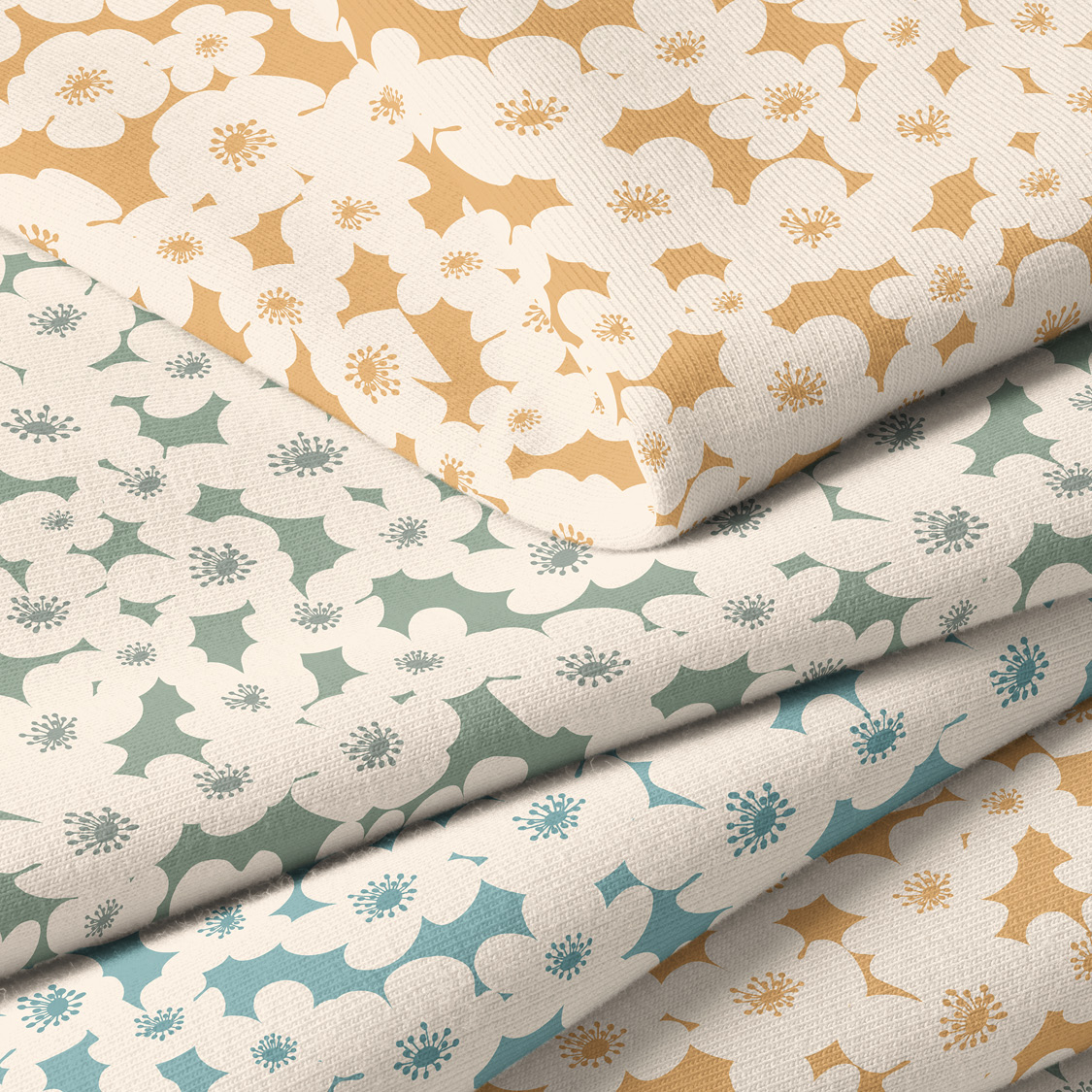 Rachel PL116 is a structured floral layout that balances strong geometric rhythm with painterly floral forms. With a nostalgic yet modern twist, it's suited to editorial stationery, home accessories and upscale kidswear.