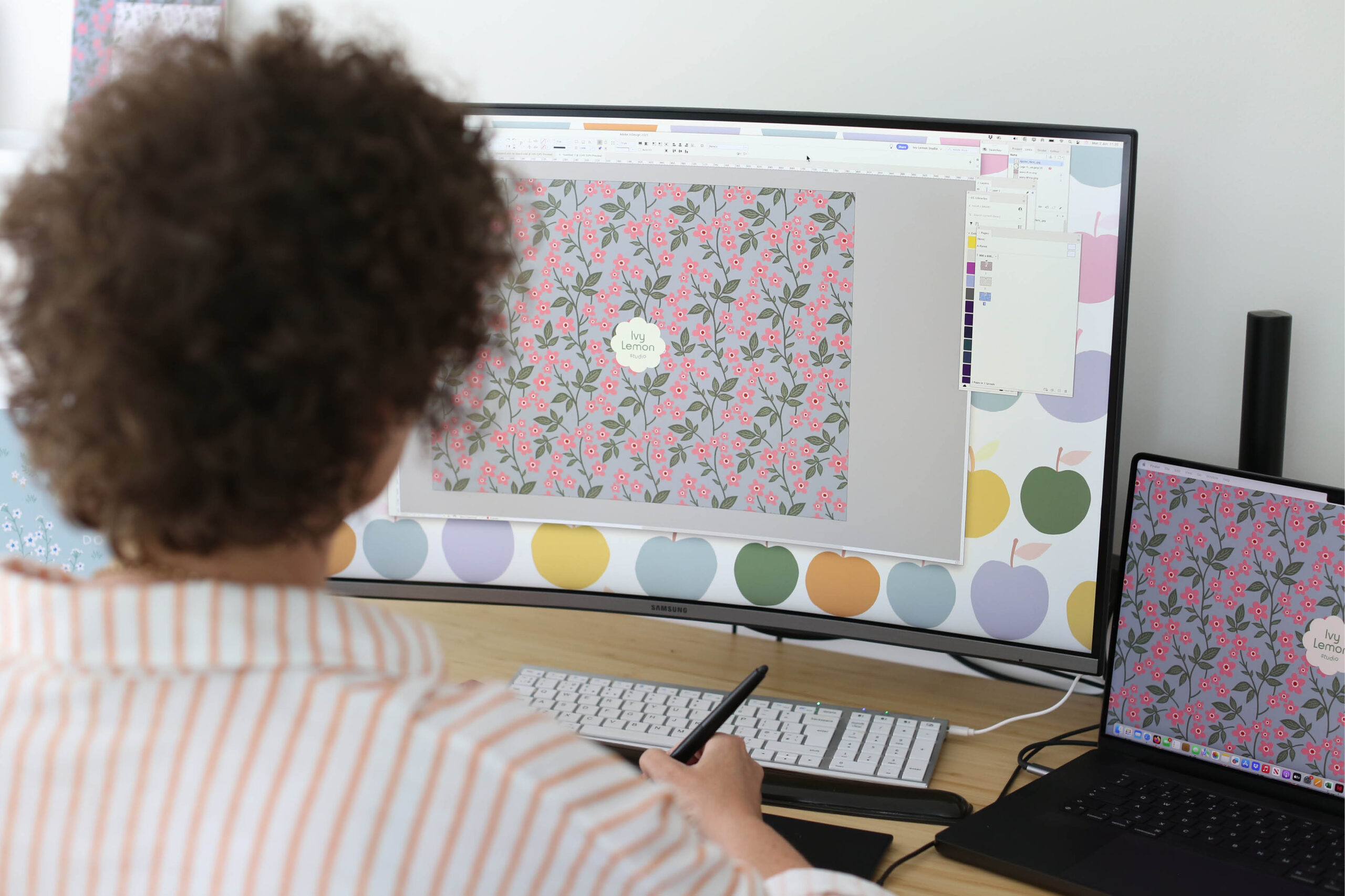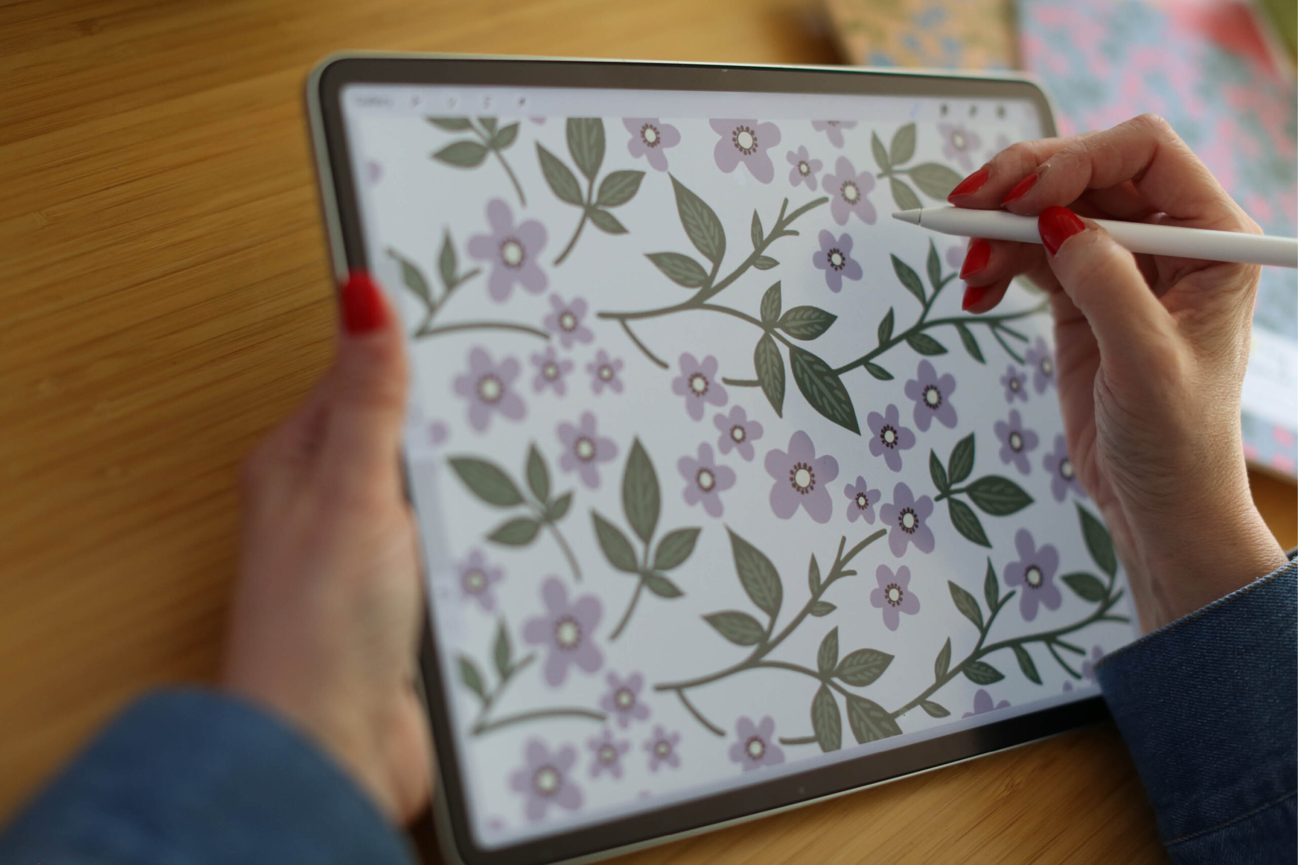 We love working on our iPad Pro because it allows us to work anywhere. Working in Procreate, our patterns always start as drawings on our iPad.